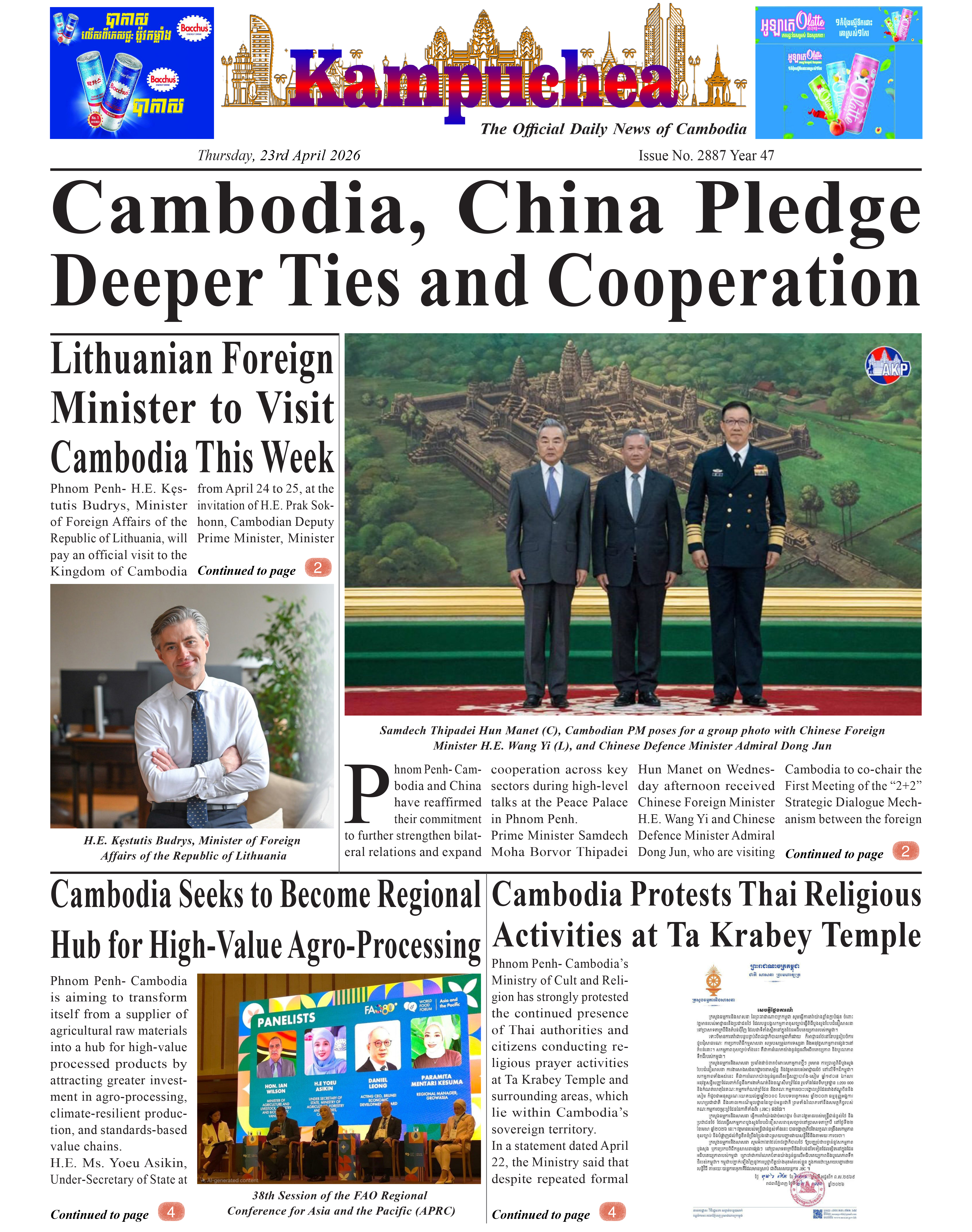 Kampuchea Newspaper on Thursday, April 23, 2026