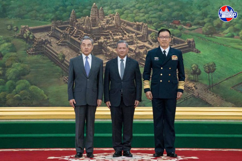 Prime Minister Samdech Moha Borvor Thipadei Hun Manet on Wednesday afternoon received Chinese Foreign Minister H.E. Wang Yi and Chinese Defence Minister Admiral Dong Jun, who are visiting Cambodia to co-chair the First Meeting of the "2+2" Strategic Dialogue Mechanism between the foreign and defence ministers of both countries from April 22 to 23.